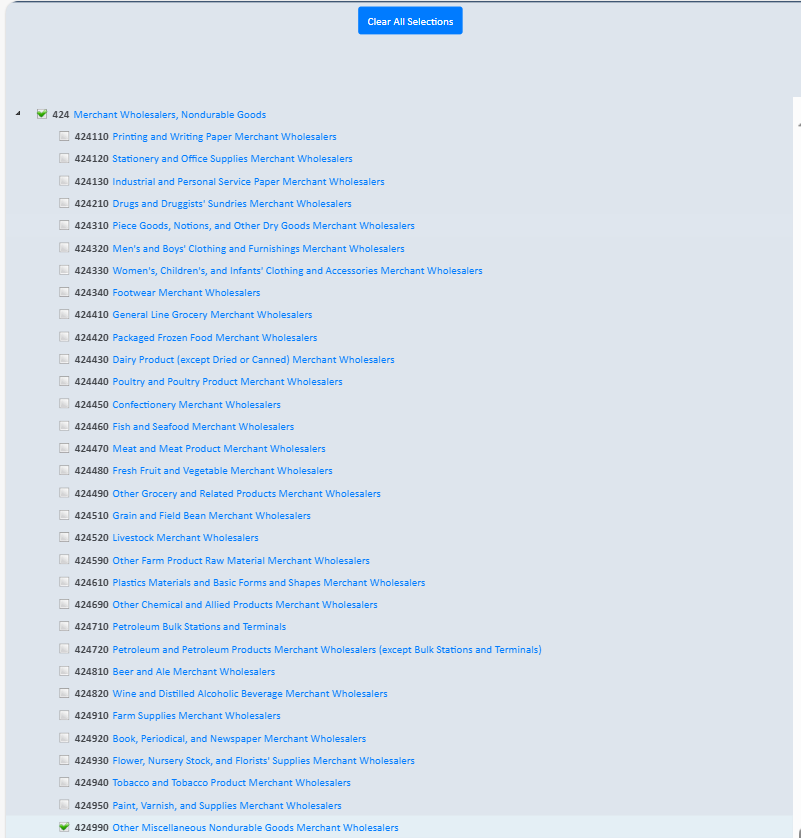 (4) Then searching for NAICS 424990 (Other Miscellaneous Nondurable Goods Merchant Wholesalers):