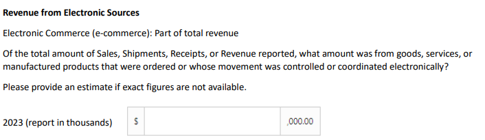 Of the total amount of Sales, Shipments, Receipts, or Revenue reported, what amount was from goods, services, or manufactured products that were ordered or whose movement was controlled or coordinated electronically?
