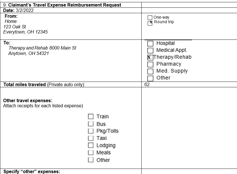 Instructions - Form OWCP-957 Part B - Medical Travel Refund Request – Expenses (All fields must be completed)