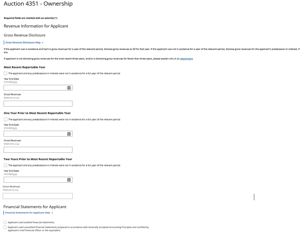 (Displayed Only to Wireless Auction Applicants Seeking a Small Business Bidding Credit Where Preceding 5 Years of Gross Revenues Must Be Disclosed)
