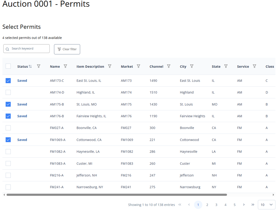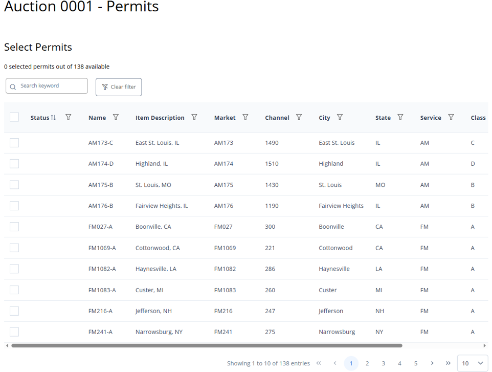 (Displayed Only to Broadcast Table Service Auction Applicants)