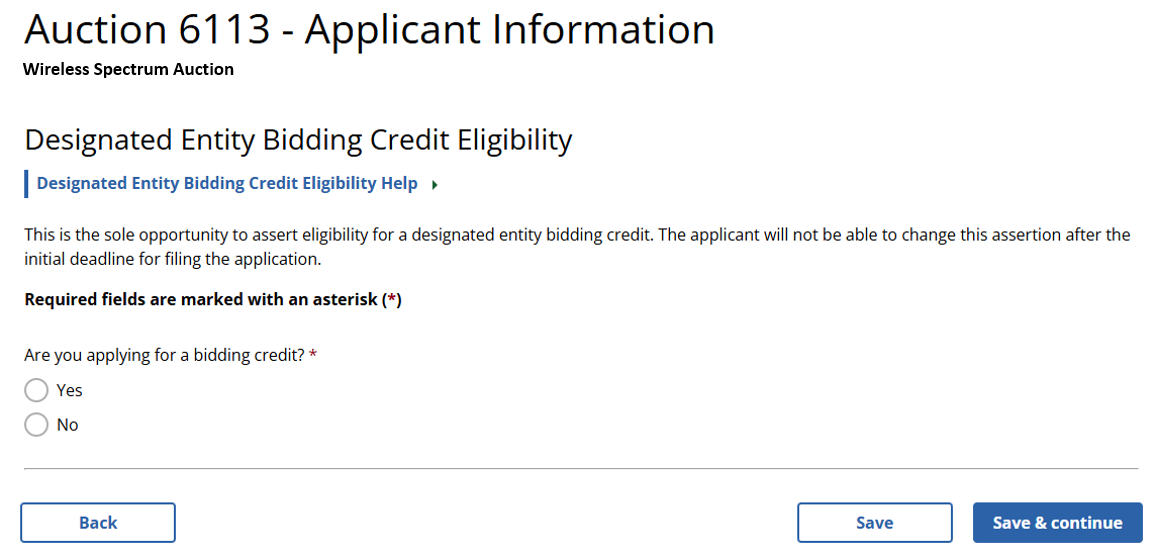 (Displayed Only to Broadcast Auction Applicants and to Wireless Auction Applicants Not Seeking a Bidding Credit)