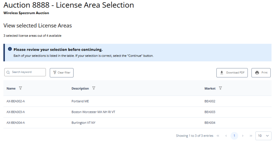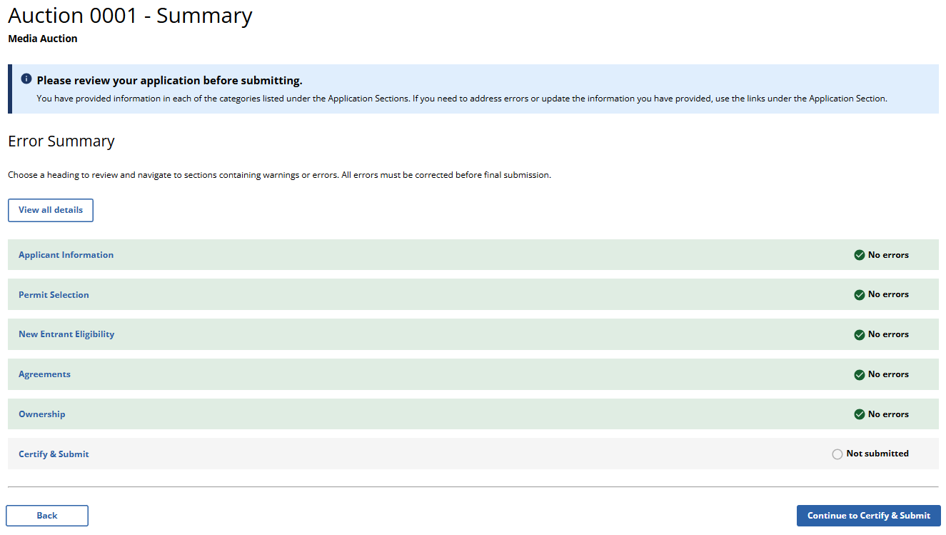 (Error Summary With No Errors Detected as Displayed to Wireless Auction Applicants)