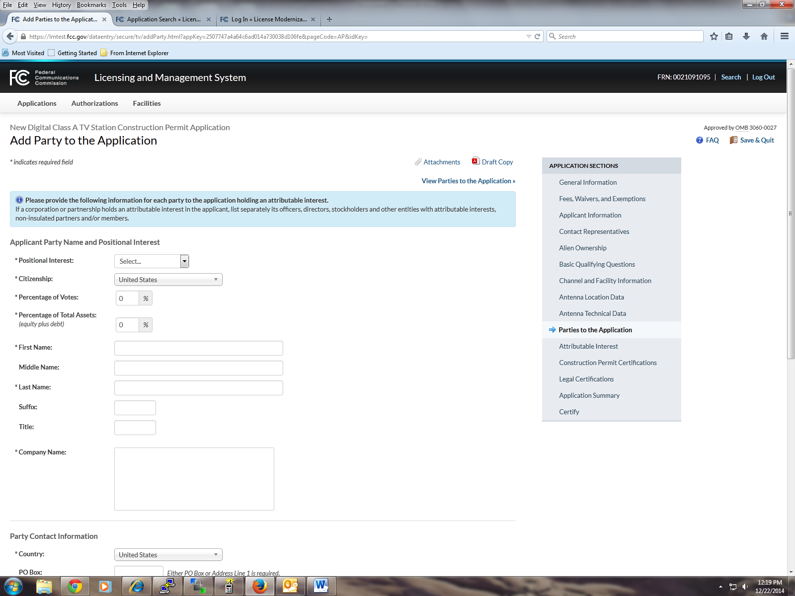 of "party to the application" as used in this certification
