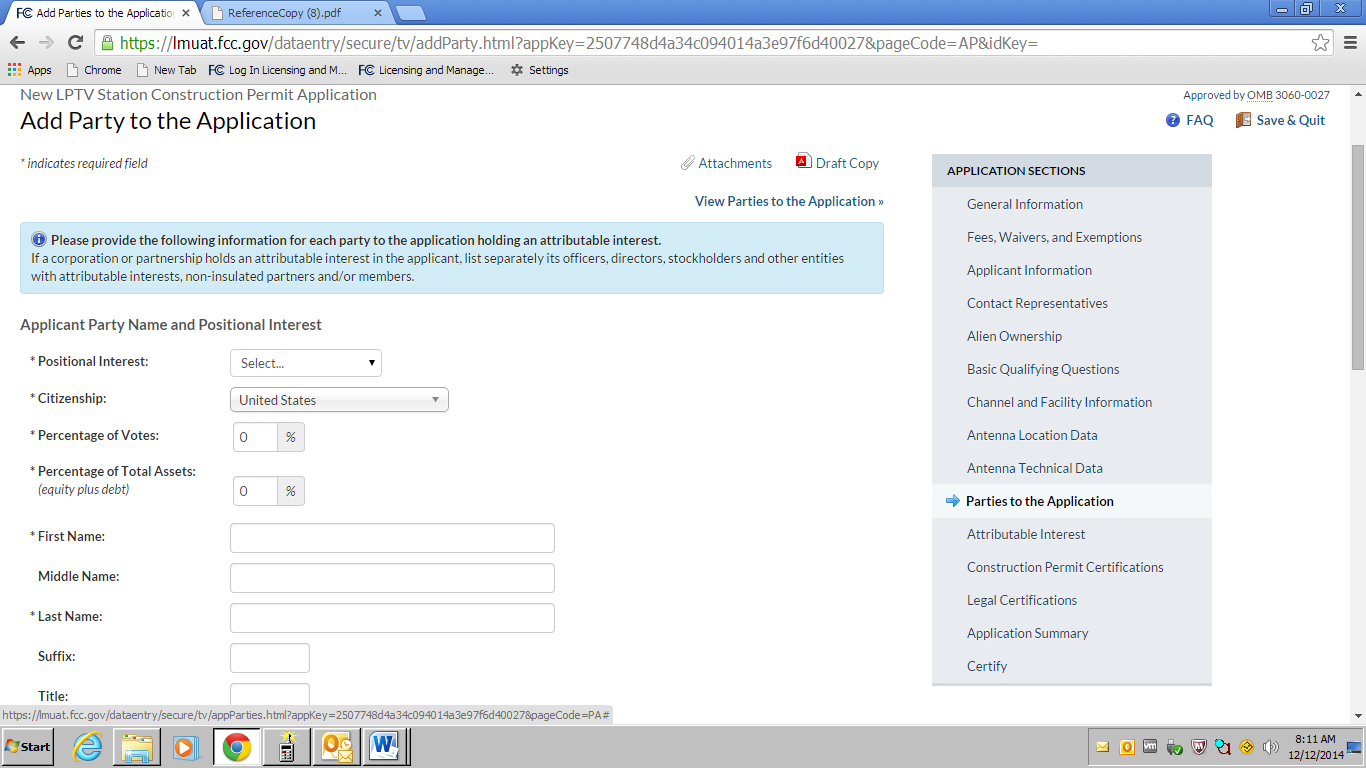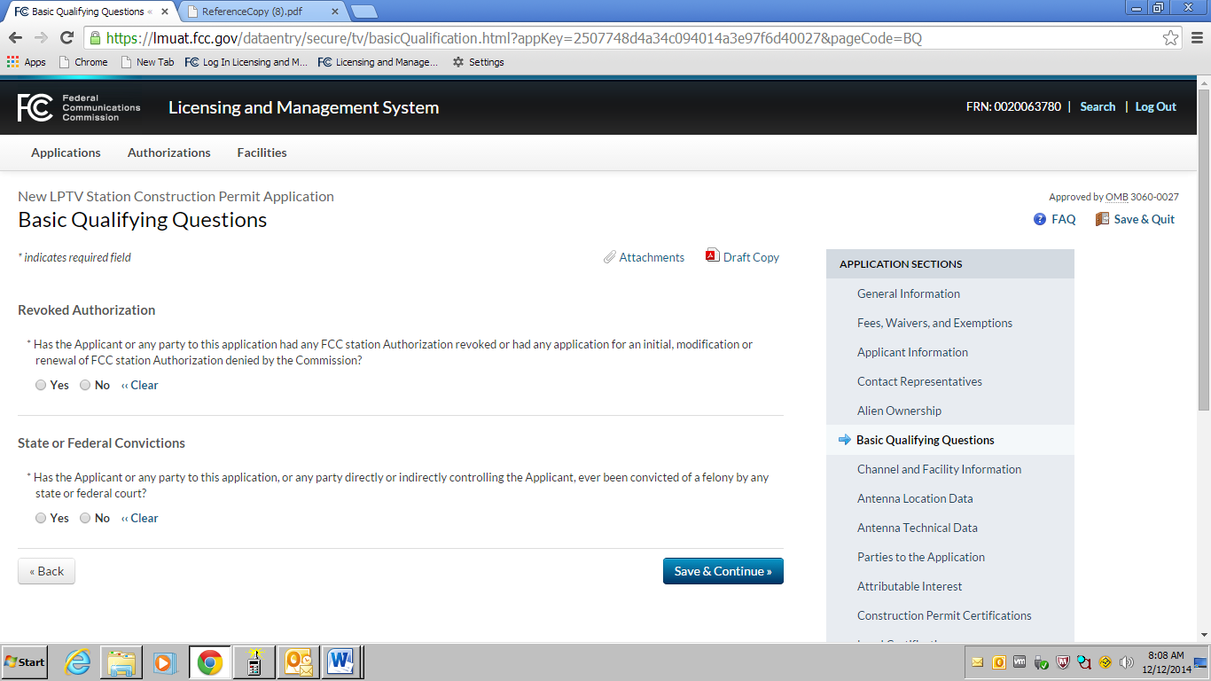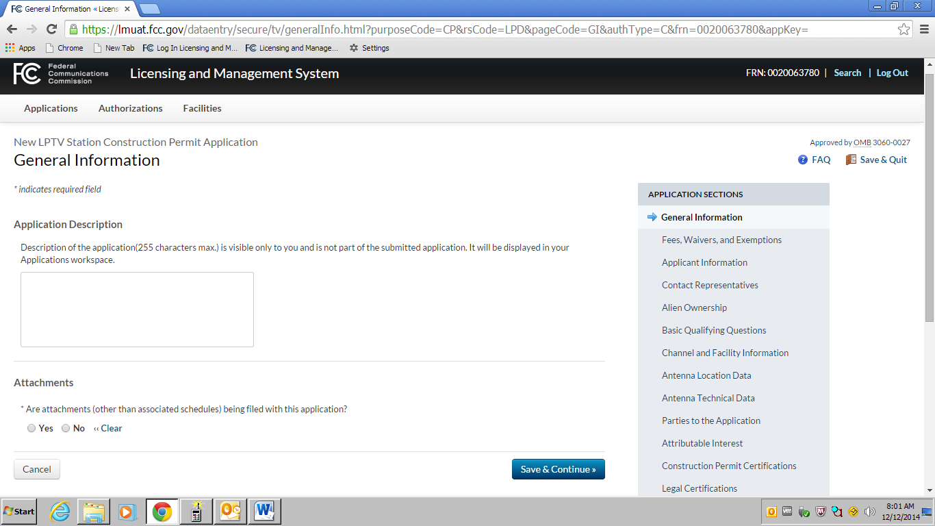 an OMB control number of 3060-0016.